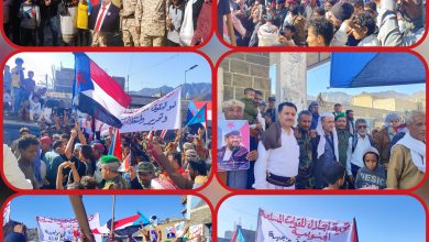 استجابة لدعوة انتقالي المحافظة إحتشاد جماهيري ومسيرة كبرى في مديرية المضاربة