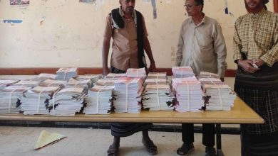 انتقالي الروضة يقدم كمية من الكتب المدرسية لإدارة التربية والتعليم بالمديرية