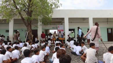 انتقالي المحفد يدشن توزيع الحقيبة المدرسية على طلاب المدارس في المديرية