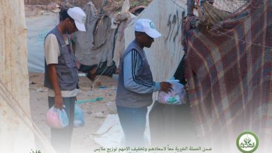 مؤسسة الهجرة توزع ملابس لأطفال النازحين في المخيمات بالعاصمة عدن