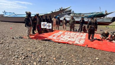 لحج.. الحملة الأمنية بالمضاربة ورأس العارة تضبط قارباً يحمل 600 ألف قرص كبتاجون