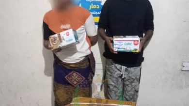 حزام عدن يضبط شخصين بتهمة سرقة بضائع من على متن شاحنات نقل