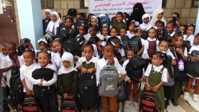 الهلال الأحمر الإماراتي يدشن مشروع توزيع الحقائب المدرسية في أبين أبين