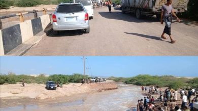 شبوة.. السيول تقطع الخط الدولي عدن – حضرموت