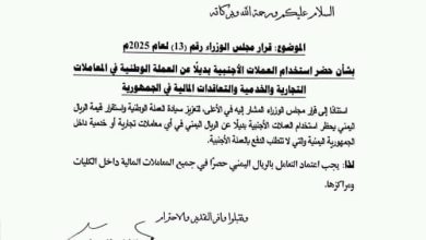 /عدن/إعلام الجامعة: أكدت جامعة عدن التزامها الكامل بقرار مجلس الوزراء رقم (13) لعام 2025م، القاضي بحظر استخدام العملات…