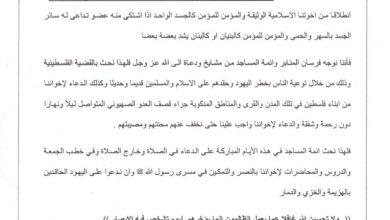 ابين ميديا – عفاف سالم قرأت مذكرة صادرة من مكتب الأوقاف والارشاد بخنفر فيها إدانة لما يتعرض له الشعب الفلسطيني…