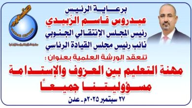 برعاية الرئيس عيدروس الزُبيدي… العاصمة عدن تستضيف ورشة عمل لإنقاذ مهنة التعليم