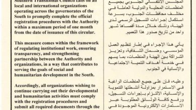 هيئة الشؤون الاجتماعية.. الامانة العامة للمجلس الانتقالي تصدر بيانا هاما.. البيان رقم «1»