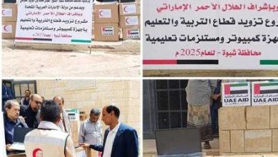 برعاية محافظ شبوة” الهلال الأحمر الإماراتي يدعم قطاع التعليم في شبوة بأجهزة ونُهج حديثة