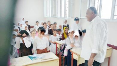 مدير تربية تبن بلحج يتفقد سير العملية التعليمية بمدرسة الحمزة بمنطقة اللحوم بالمديرية