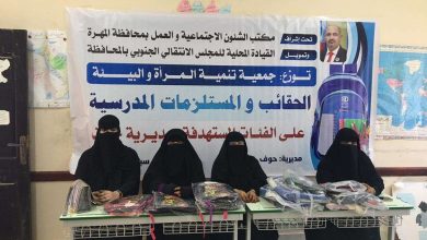 بدعم انتقالي المهرة… جمعية تنمية المرأة تنفذ مشروع توزيع المستلزمات المدرسية على الطلاب