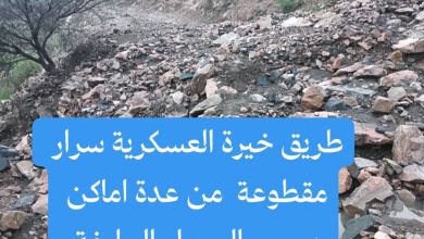 انقطاع طريق سرار العسكرية بمنطقة خيرة بسبب سيول الأمطار.