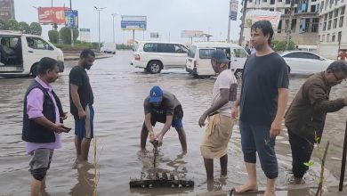السلطة المحلية بمديرية المنصورة تستنفر جهودها عقب الأمطار الغزيرة التي شهدته العاصمة عدن