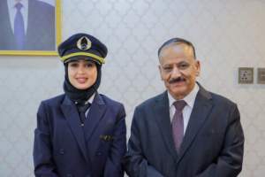 الوزير حُميد يلتقي الكابتن طيار مريم عبدربه ويؤكد اعتزازه بالكادر النسائي في قطاع النقل
