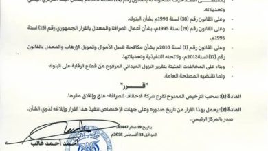 محافظ البنك المركزي يصدر قرار رقم 20 بشأن سحب ترخيص فرع شركة صرافة وإغلاق مقرها