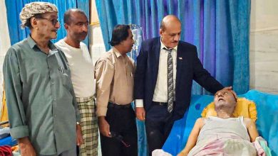فريق من الجمعية الوطنية يطمئن على صحة العميد سالم باشادي بأحد مشافي العاصمة عدن