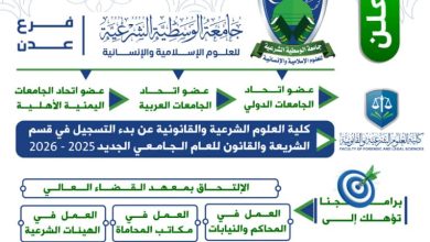 أبين ميديا / العاصمة عدن /خاص افتتحت كلية العلوم الشرعية والقانونية بجامعة الوسطية الشرعية، فرع العاصمة عدن، باب التسجيل في…