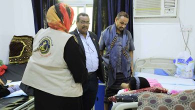 هيئة الإغاثة تتفقد أسرة ضحايا مجزرة الحوثي في المسيمير