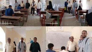 بحضور الحامد واليوسفي عميد معهد الدكتور أمين ناشر للعلوم الصحية فرع أبين يطلع على سير عملية الامتحانات النهائية للعام 2024-2025م