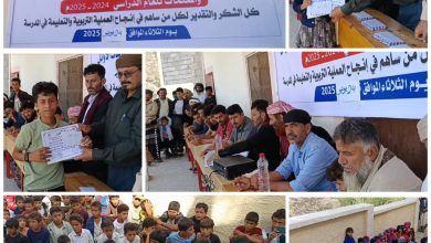 برعاية الشيخ فضل بن علي الجعوني: مدرسة حيدرة صالح سخاعة بيافع رصد تكرم طلابها المتفوقين علمياً