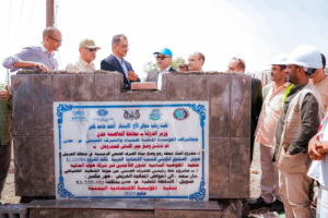 العاصمة عدن. وضع حجر الأساس لمشروع محطة ضخ الصرف الصحي بالعريش