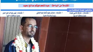 أبين ميديا / عدن/ نجيب الداعري نال الباحث عبدالمنعم هيثم صالح سعيد المعيد في قسم اللغة الإنجليزية بكلية يافع الجامعية…