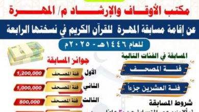 أبين ميديا /المهرة أعلن مكتب الأوقاف والإرشاد بالمهرة عن إقامة مسابقة المهرة للقرآن الكريم في نسختها الرابعة للعام ١٤٤٦هـ…