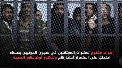 إضراب مفتوح لعشرات المعتقلين في سجون الحوثيين بصنعاء احتجاجًا على استمرار احتجازهم وتدهور أوضاعهم الصحية*