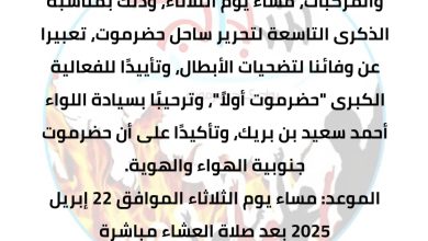 أبين ميدياـ حضرموت أعلنت اللجنة الإعلامية لفعالية “حضرموت أولًا”، اليوم، عن الشعار الرسمي للفعالية التي تستعد لها محافظة حضرموت خلال…