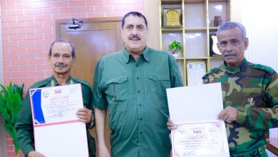 مدير أمن العاصمة عدن يكرم ضابطين نظير تفانيهم بعملهم وإخلاصهم أثناء تنفيذ المهام.