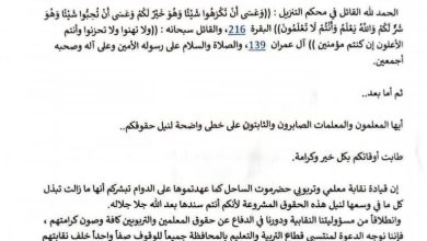 نقابة معلمي وتربويي ساحل حضرموتتعلن الإضراب المفتوح