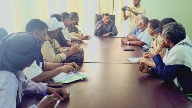 محافظ أبين يلتقي برئيس واعضا لجنة تعشيب ملعب الفقيد البيتي بجعار.