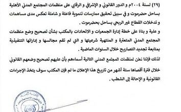 مكتب وزارة الشؤون الاجتماعية والعمل بساحل حضرموت يدعو منظمات المجتمع المدني لتصحيح أوضاعها القانونية 1 مايو، 2025 أخبار…