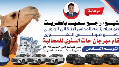المهرة_خاص برعاية الشيخ راجح سعيد باكريت، عضو هيئة رئاسة المجلس الانتقالي الجنوبي، تنطلق فعاليات مهرجان حات السنوي للمحالبة في…