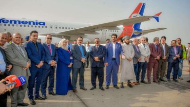 وزير النقل يستقبل وصول الطائرة الجديدة “320 A المسماه “مملكة أوسان” الى مطار عدن الدولي