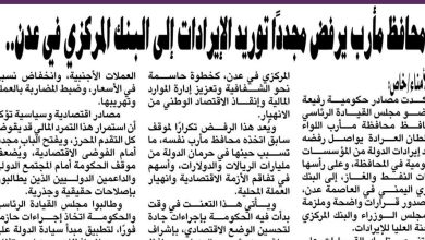 . متابعات أكدت مصادر حكومية رفيعة أن عضو مجلس القيادة الرئاسي ومحافظ محافظة مأرب اللواء سلطان العرادة يواصل رفضه…