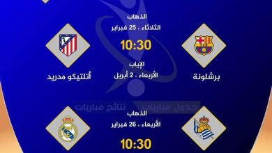 1️⃣ المُباراة الأولى ( الذهاب ) 📅 الثلاثاء ، 25 فبراير برشلونة 🆚 أتلتيكو مدريد 🏟️ ملعب المونتجويك ⏰…