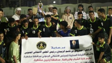 أبين ميديا–سقطرى اختتمت إدارة الشباب والرياضة بالهيئة التنفيذية للقيادة المحلية للمجلس الانتقالي الجنوبي في محافظة سقطرى، مساء الأحد، البطولة السباعية…