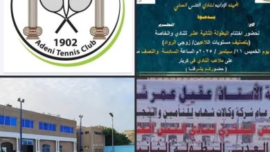 دعوة حضور اختتام بطولة نادي التنس العدني