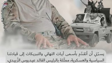 أبين ميديا /إعلام_اللواء_السادس_دعم_واسناد رفع العميد سياف المعكر، قائد اللواء السادس دعم واسناد، أسمى آيات التهاني والتبريكات إلى كافة أبناء شعب…
