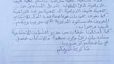 تصحيح اسم جمعية مريب الزراعية بعد ورود خطأ في تسميتها