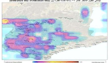 متابعات أعلن مركز الإنذار المبكر في محافظة حضرموت عن استمرار توسع نشاط الأمطار الرعدية التي تؤثر على عدد من المناطق…